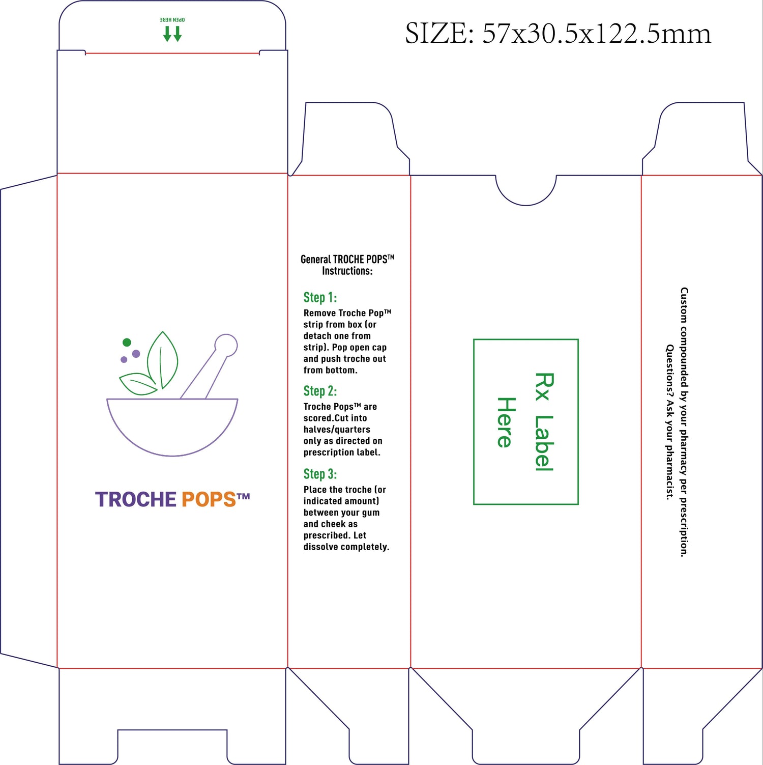 Elevate your troche dispensing with the TROCHE POPS™ Rx Box – a premium, pharmacy-compliant white tuck box (350gsm matte-laminated card) that elegantly holds up to 30 troches. Ample space for the standard prescription labels and auxiliary flags ensures seamless, professional delivery while the luxurious thick-card finish impresses patients and reinforces your compounding excellence—embrace the future of pharmaceutical packaging with TROCHE POPS™ today!